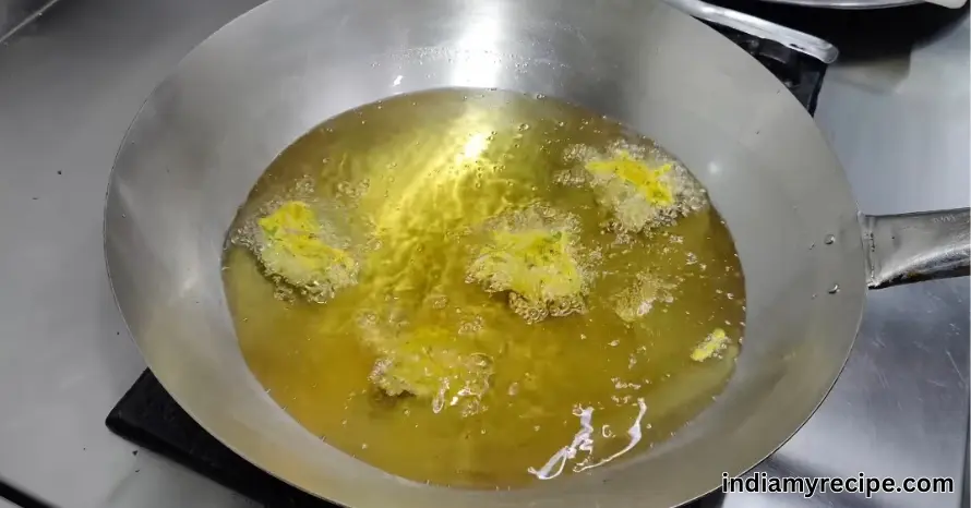 अब एक कड़ाई में तेल गरम करे तेल के गरम होने पर अपने हाथ में तोड़ा सा ले लगाकर चिकना करे फिर थोड़ा थोड़ा मिश्रण तेल में डाले और करारे और सुनहरे होने तक पकाए l (तेल में फ्राई करते समय करछी से बीच बीच में चलते रहे )