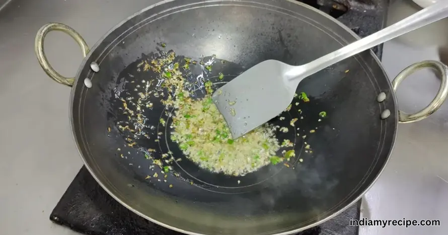 सबसे पहले एक कढ़ाई में तेल गर्म करें। तेल के गर्म होते ही उसमें जीरा डालें। जैसे ही जीरा चटकने लगे उसमें बारीक कटी हुई हरी मिर्च और अदरक डालकर थोड़ा सा भूनें। यह तड़का आपके नाश्ते में एक अद्भुत स्वाद जोड़ेगा।